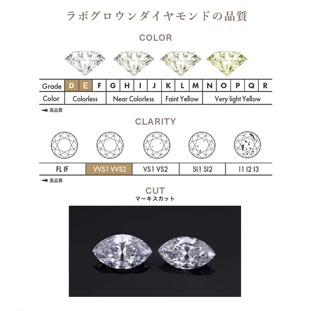 天然 ダイヤ では、4粒ともにこれだけの品質と輝きの マーキスカット を揃える事が難しく、とても高額になってしま いますが、 ラボグロウン ダイヤモンド ならではの本物の上級 ダイヤモンド の輝きとボリューム感をお手頃にご利用い ただけます。